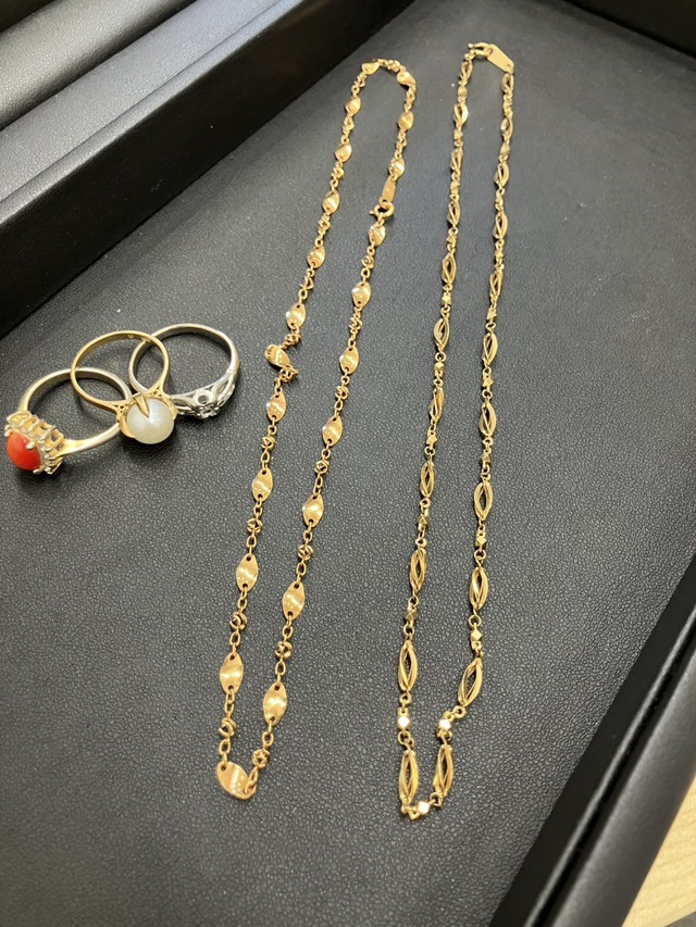 当店では、付属の宝石やデザイン性、ブランドジュエリーなど、本来であれば査定対象にならない部分を含めた「製品としての価値」を上乗せして査定いたします。ゴールドバーやプラチナバーはもちろんのこと、金縁メガネや金歯も高価査定の対象です。