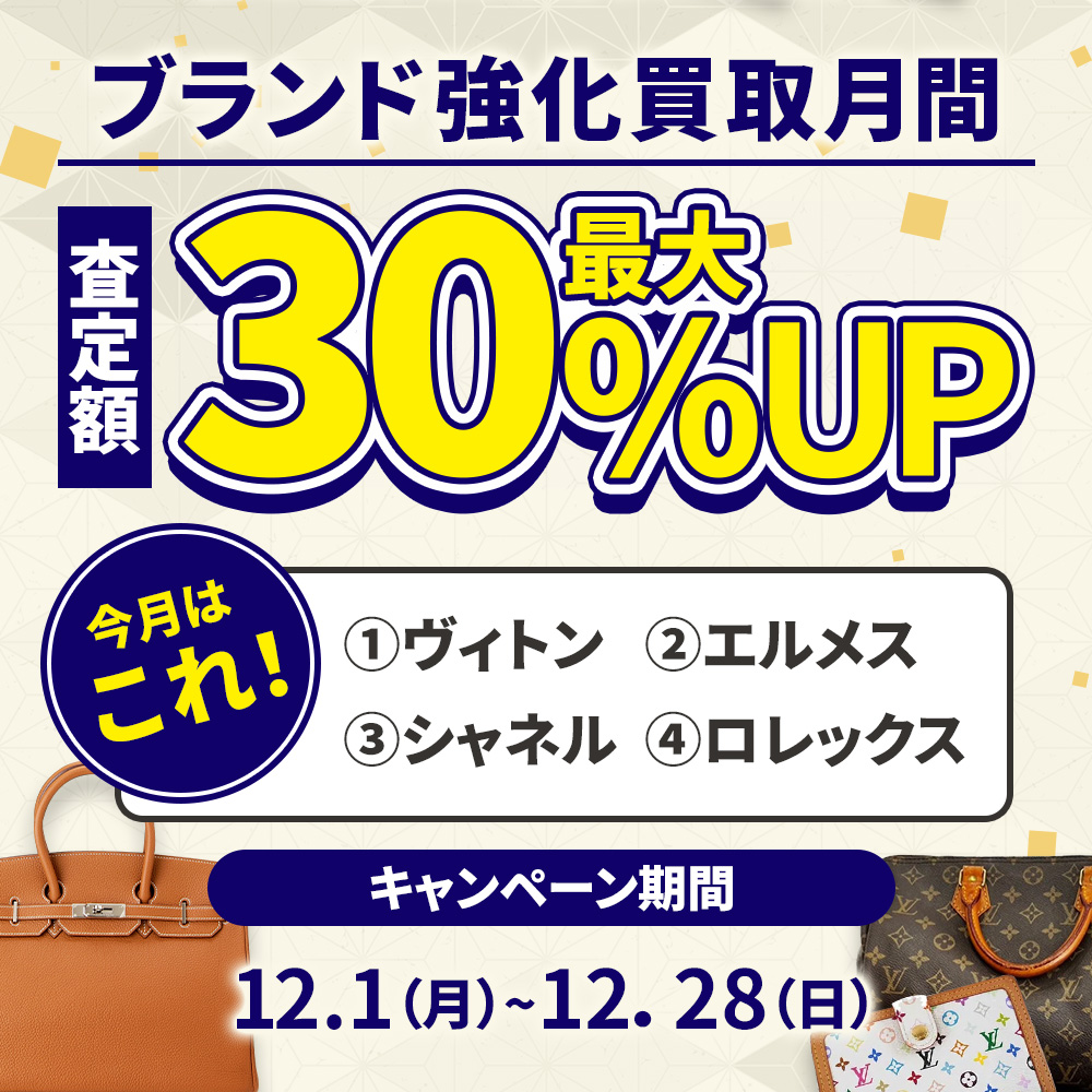 \12月/【ブランド強化買取月間】ヴィトン・ロレックスなど4大ブランド 査定額最大30%アップ!
